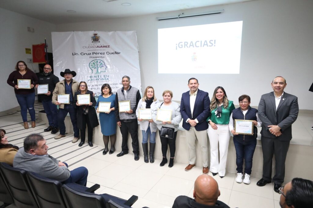 El Presidente Municipal de Ciudad Juárez, Cruz Pérez Cuéllar, asistió al informe de resultados del programa Mente en Armonía, una estrategia enfocada en la atención y prevención de la salud mental, implementada en once Centros Comunitarios de la ciudad y encabezada por Lucía Barrios.
