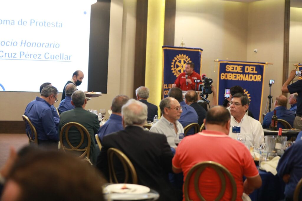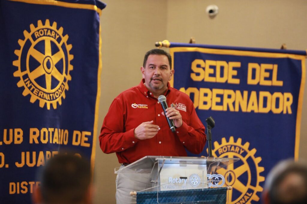 Ciudad Juárez, Chih.– En una ceremonia marcada por el reconocimiento y el simbolismo, el alcalde Cruz Pérez Cuéllar fue distinguido como socio honorario del Club Rotario de Ciudad Juárez, en el marco del centenario de esta organización. No obstante, más allá del homenaje, una fotografía captada durante el evento provocó revuelo: al fondo del edil, se leía con claridad la frase “Sede del Gobernador”.