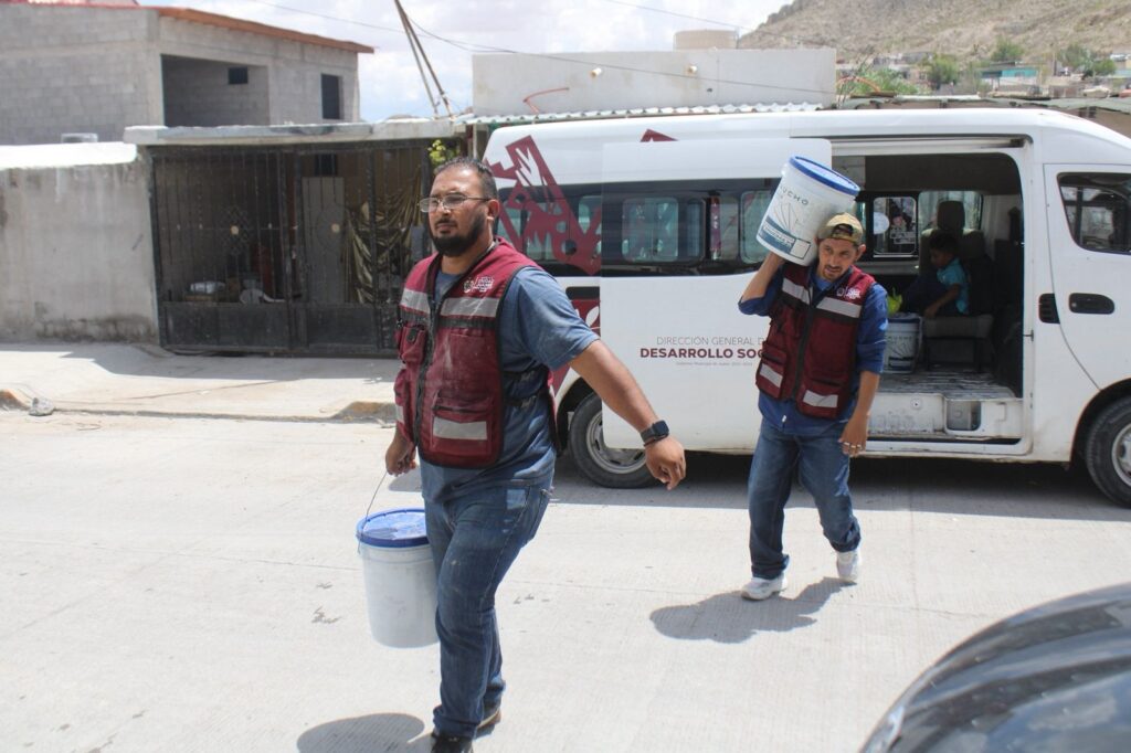 Ciudad Juárez, Chih. — La Dirección General de Desarrollo Social, a través de su equipo de Organización Social, continúa con la entrega de material para la reconstrucción de viviendas en diversas colonias de la ciudad, beneficiando a familias en situación de vulnerabilidad que resultaron afectadas por las lluvias del pasado 26 de junio.