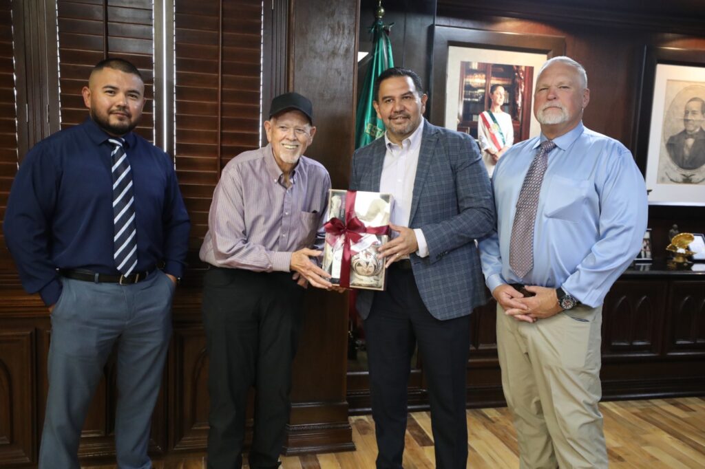 El Presidente Municipal de Juárez, Cruz Pérez Cuéllar, sostuvo un encuentro con el alcalde de Columbus, Nuevo México, Phillip Skinner, en el que ambos coincidieron en la importancia de estrechar la colaboración binacional y potenciar proyectos que beneficien la región fronteriza.